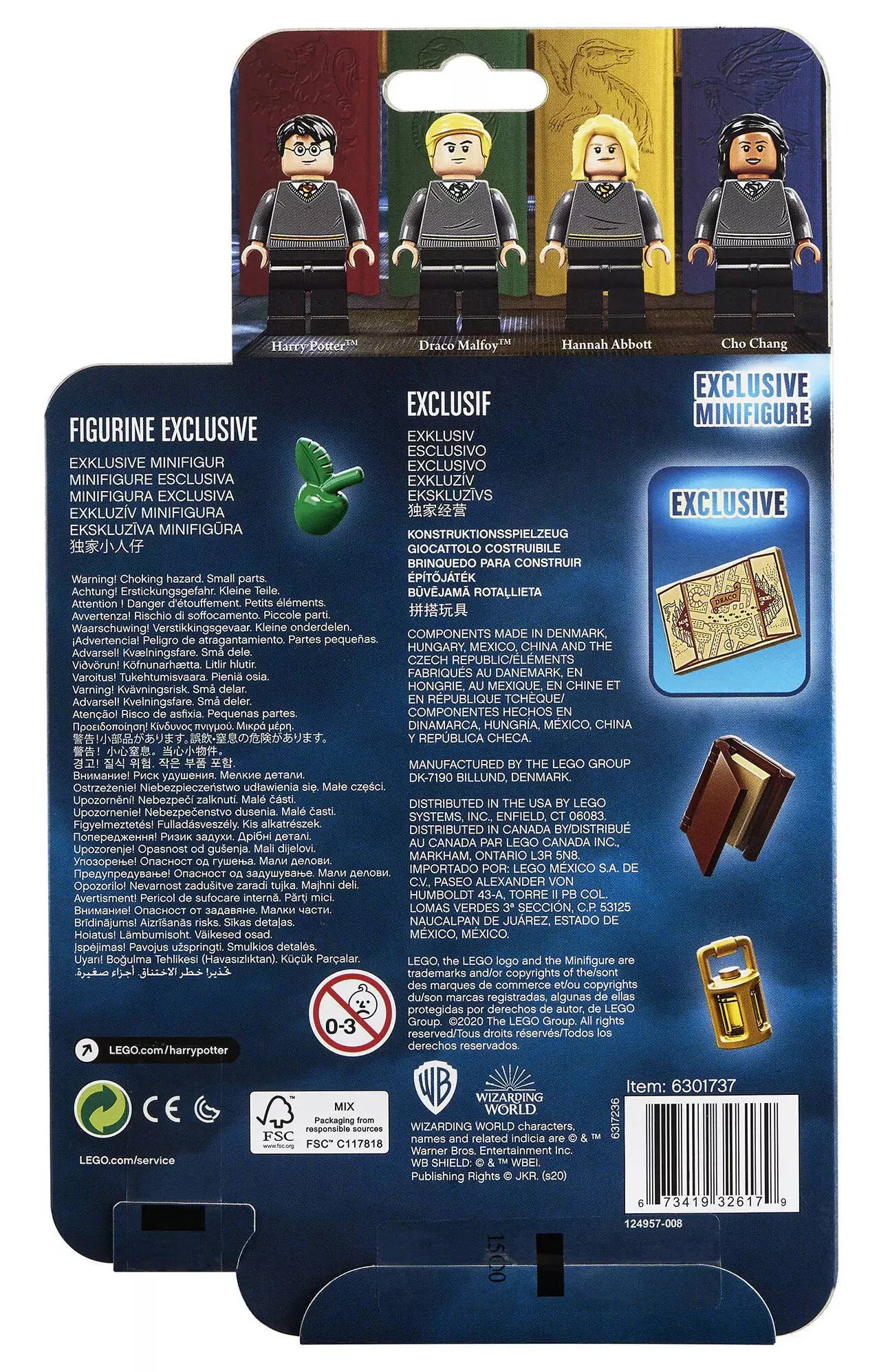 - 4 минифигурки: Гарри Поттер, Драко Малфой, Ханна Аббот, Чжоу Чанг